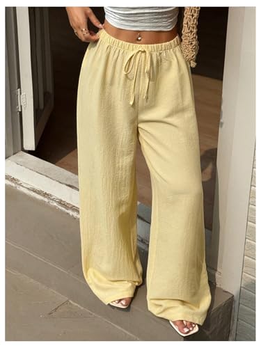 • Features: Low rise wide leg pants for women, y2k baggy pants trousers, elastic waist with adjustable drawstring, loose-fit, solid color, travel outfits, beach vacation clothes