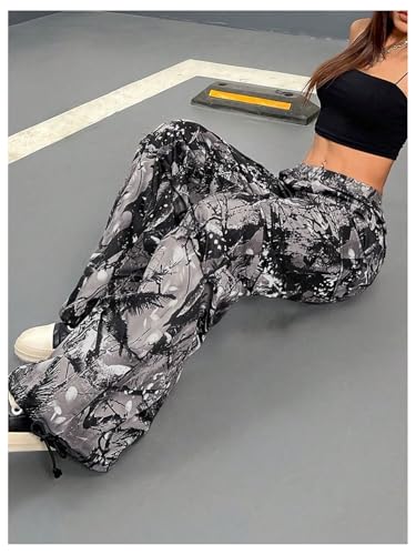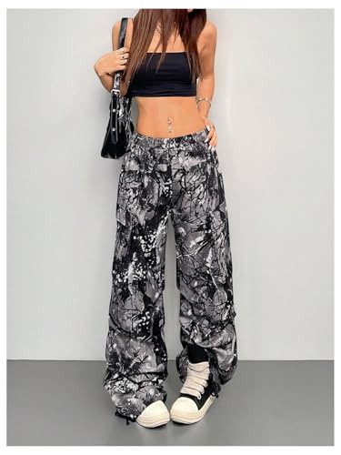 HOT ! Verdusa Women's Grunge Camo Cargo Pants Wide Leg Baggy Parachute Pants with Pockets