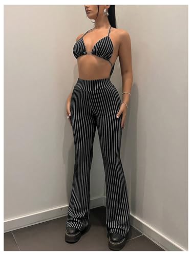 • Feature: Striped, flare leg, elastic waist, high rise, skinny, casual, trousers pants for women