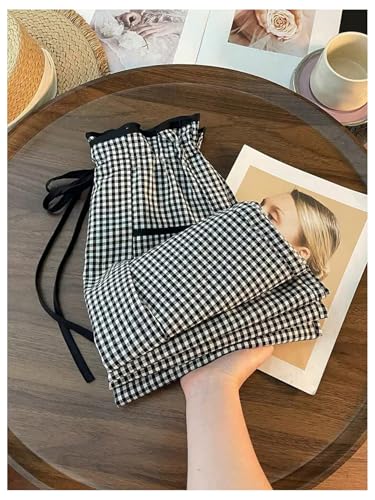 More information about SweatyRocks Women's Gingham Plaid Loose Pants Drawstring High Waist Long Trousers with Pocket