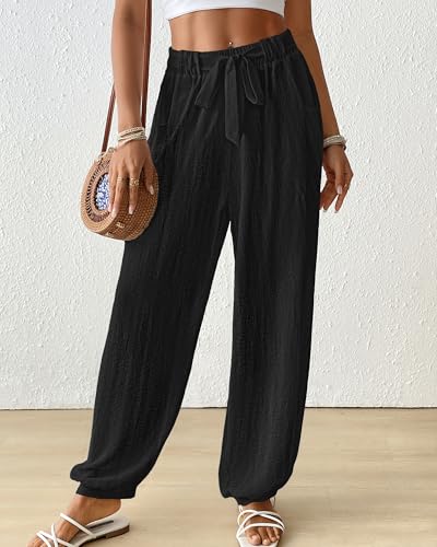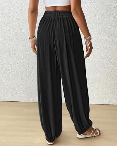 More information about Bsubseach Women Wide Leg Palazzo Pants 2025 Summer Casual Drawstring Lounge Harem Pants with Pocket Woman Baggy Trousers