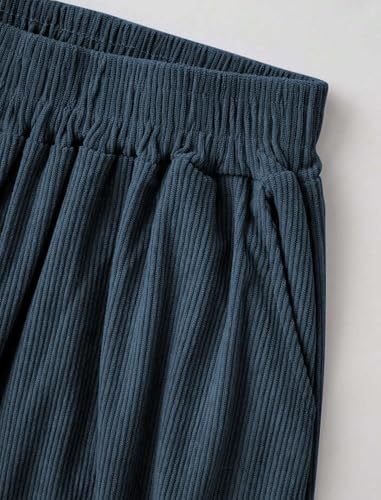 ZAFUL Women's Corduroy Pants Baggy High Waisted Wide Leg Pants Retro Loose Fit Casual Trousers with Pockets Navy Blue 7