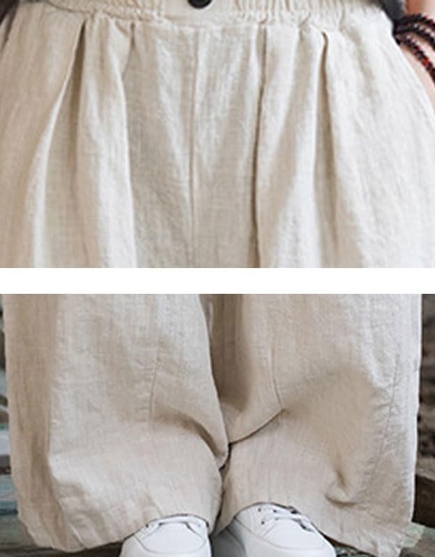 • The baggy and daily cotton linen pants for women have elastic waist,button up,solid color, two side pockets.