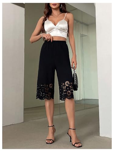 • Feature: Floral Eyelet, Elastic Waist, High Rise, Wide Leg, Solid, Loose Fit, Capri Length, Pants for Women