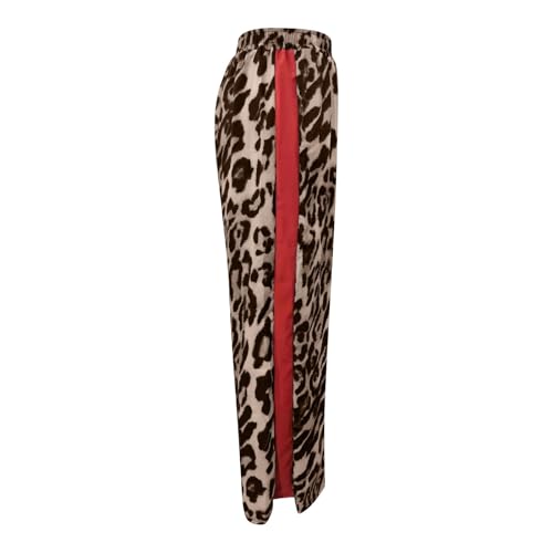 HOT ! Leopard Print Pants for Women Cheetah Printed Side Striped Color Block Straight Leg Wide Leg Pant Drawstring Trousers