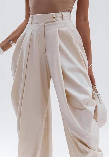 • Design:These wideleg harem pants feature a high waisted design with elegant pleats and a tapered, flowing silhouette, creating a business-casual look. The buttons at the waist add a touch of sophistication and ease to your outfit.