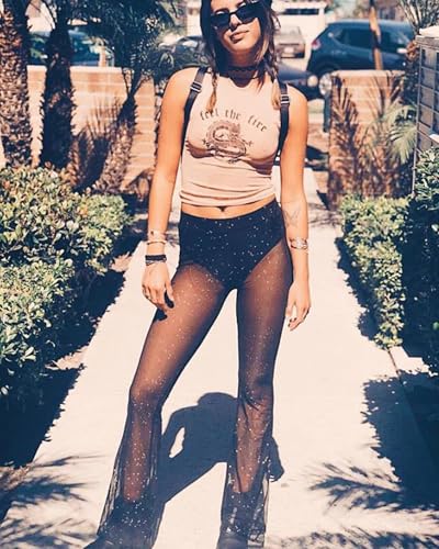• The Mesh pants for women festival clothes black rave pants can be a swimwear. Rave pants mesh pants sheer pants mesh pants for women is perfect for the hot summer beach.