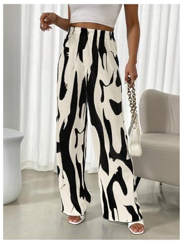 More information about GORGLITTER Women's Gaucho Graphic Pleated Dress Pants Wide Leg Elastic Waist Elegant Trousers