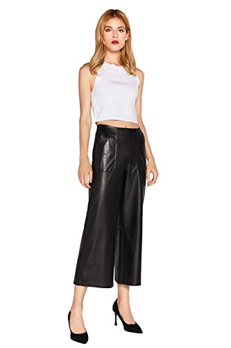 • High quality genuine leather pants for women, fully lined for optimum comfort, it's cut to somewhere between a classic culotte and contemporary wide leg pants.