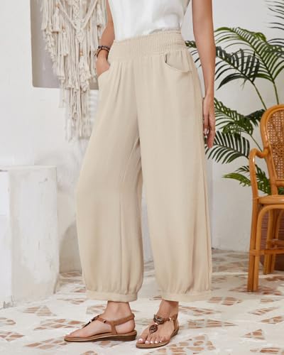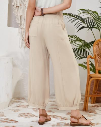 Womens Linen Wide Leg Pants Summer Beach Palazzo Harem Pants Casual Ankle Length Trouser Slacks 7