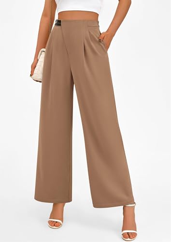Women's Wide Leg Pants High Waisted Business Casual Work Office Dressy Suit Palazzo Pant Trousers with Belt 1