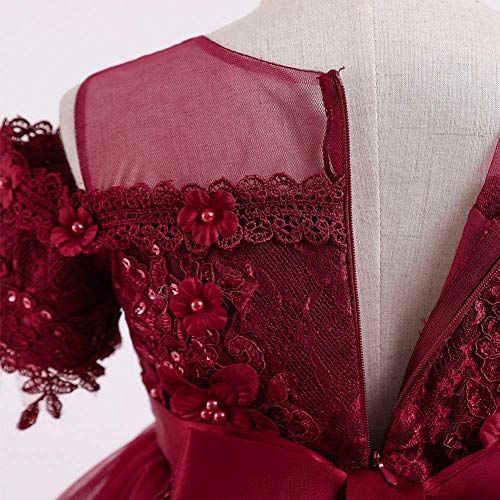 Flower Girls Applique Lace Wedding Tulle Dress Cold-Shoulder Short Sleeve Pageant Birthday Party Evening Ball Gown 6