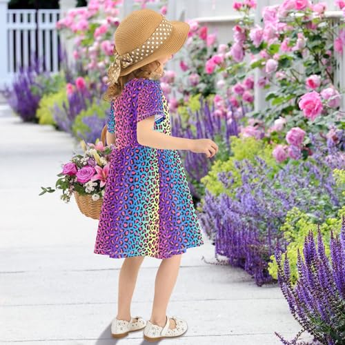 ALAZA Girls Summer Dress Short Sleeve Neon Rainbow Leopard Cheetah Casual Girls Dresses for Kids 2-8 Years 6