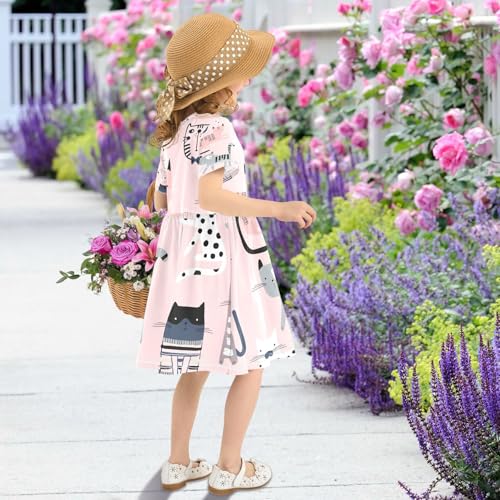 Colorful Kitten Cats Girls Dress Short Sleeve Dress Girls' Summer Sundress 5-6T 7