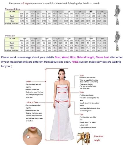• Size:Before purchasing, please measure bust, waist, hips, shoulder to floor + heel, height + heel, then refer to the size chart in the picture to choose the right size. If your data is between 2 sizes, please choose the larger size, it will fit better. Give us your measurements,dresses can also be customized in size
