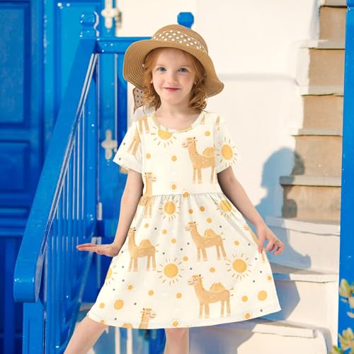 Cartoon Camel Sun Print Little Girls Short Sleeve Dress Casual Summer Party Skater Dresses for Kids 2-8T 4