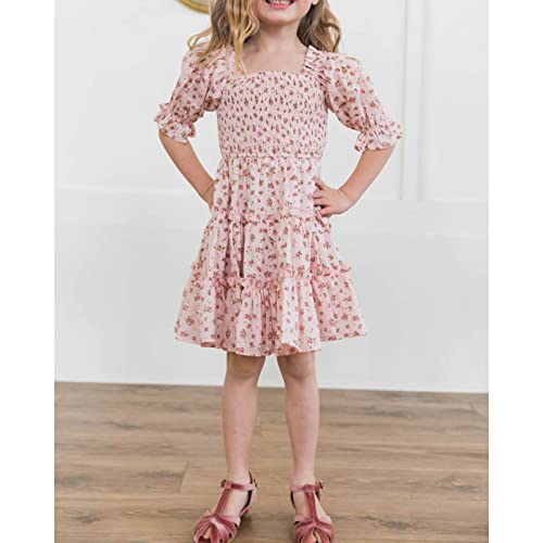 Mommy and Me Dresses Matching Set Summer Boho Dress Square Neck Ruffle Sleeves Floral Tiered Dress for Women and Girls 6