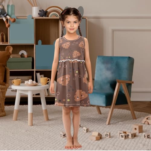 • ✿【Charming Design】Features a cute sleeveless design with an A line silhouette, round neck, and no sleeves. The fashionable ruffle at the waist adds a touch of charm, and the knee length cut is both elegant and practical. The dress is easy to put on and take off, and the beautiful printing makes your girl stand out.
