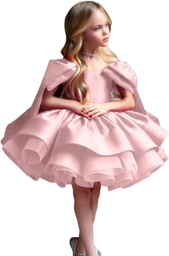 Flower Girl Dress Satin Toddler Short Girl Pageant Dresses for Girls Sleeveless A Line Birthday Party Dress with Bow 6