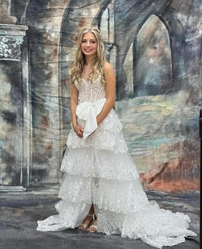 • Features:Tiered Lace Tulle Prom Dresses 2025, Strapless Layered Formal Evening Gown,A-Line Corset Strapless Fancy Evening Dress with Bow,Corset Graduation Dress for Teens, Built in Bra, Side Leg Slit, Lace-up Back, Fully Lined.Luxury design make you looks more Noble and charming.