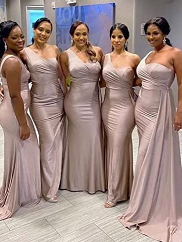 One Shoulder Mermaid Bridesmaid Dresses for Wedding Bodycon Satin Long Formal Evening Gowns with Train 6