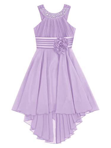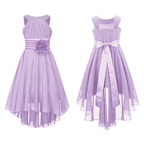renvena Kids Flower Girls High Low Chiffon Dress Sparkly Beaded Pleated Bridesmaid Wedding Pageant Ball Gown 7