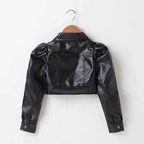 WASAIGOOD Toddler Girls Motorcycle Jackets PU Faux Leather Coat Turn-Down Collar Long Sleeve Crop Tops Outerwear Coats 5