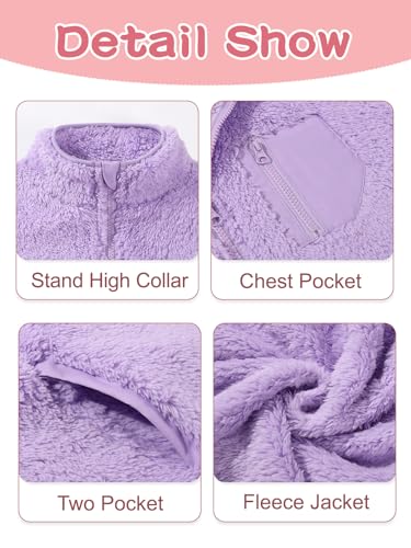 • Girls Fleece Jacket: Crafted from plush, skin-friendly fleece material, this girls fuzzy jacket is incredibly soft and warm, providing ideal comfort without irritation. It's the perfect kids fleece jacket for crisp fall and winter days.