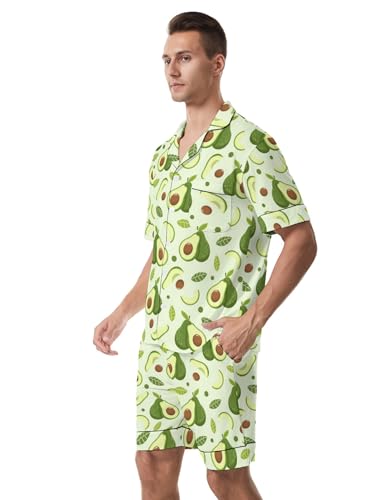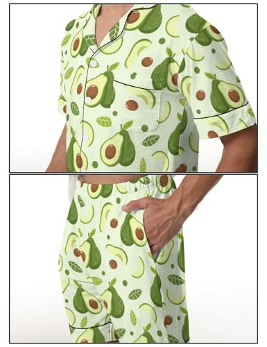 • Unique Fashion Design - Avocado Men's two piece pajama set, short-sleeved button-up top and elastic waistband shorts, easy to put on and take off. Contrast piping, left chest pocket and double-sided pockets on pants, can hold mobile phones and wallets, making you cool and fashionable.