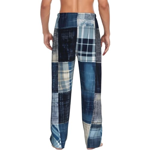 HOT ! Vosery Mens Pajama Pants Bottoms With Pockets- Indigo Patchwork Quilt Soft Men Lounge Pants, Comfy Mens Pj Pants