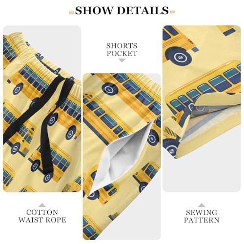 Vdsrup Mens Pajama Shorts Yellow School Buses Sleep Shorts Men Pajama Bottoms With Pockets Drawstring Lounge S 4