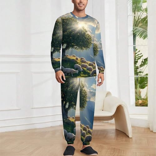 Mountain Landscape Sheeps Christian Men’s Pajama Set Long Sleeve Top And Pants Loungewear Sleepwear Pjs Nightwear 1