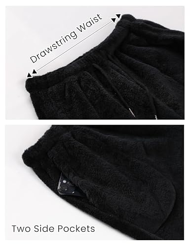 Yeokou Womens Fleece Pajama Pants Warm Fuzzy Cozy Mens Sleep Bottoms With Pockets(-Black-M) 7
