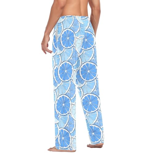 Mens Cotton Pajama Pants Sleep Lounge Pj Bottoms Sleepwear with Pockets Drawstring S Lemon Blue 1