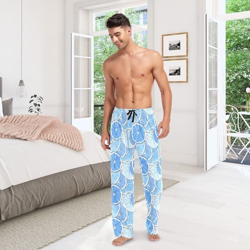 Mens Cotton Pajama Pants Sleep Lounge Pj Bottoms Sleepwear with Pockets Drawstring S Lemon Blue 4