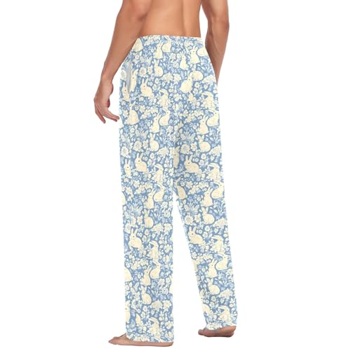 Mens Cotton Pajama Pants Sleep Lounge Pj Bottoms Sleepwear with Pockets Drawstring S Blue Rabbit 1