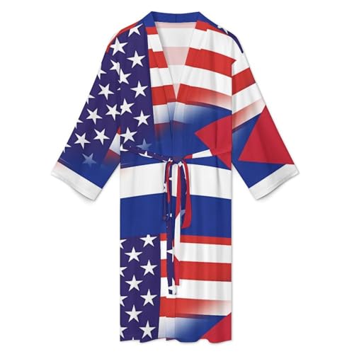 HOT ! US Cuba Flag Funny Men's Robe Soft Lightweight Bathrobe Long-sleeve Spa Robes