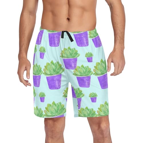 HOT ! Green Succulent Plant Pajama Shorts for Men Lounge Pants Bottom Lounge Short Men'S Sleep Shorts with Pockets, S-XXL