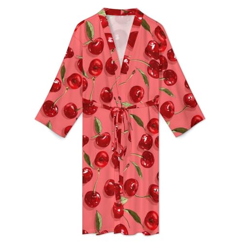Red Fresh Cherries Fruit Funny Men's Robe Soft Lightweight Bathrobe Long-sleeve Spa Robes 3