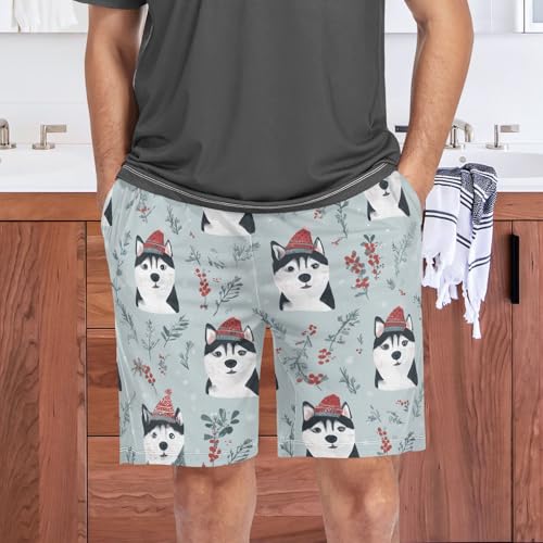 Husky Spruce Branch Pajama Bottom Shorts for Men Soft Casual Sleep Lounge Shorts with Pockets S-XXL 5