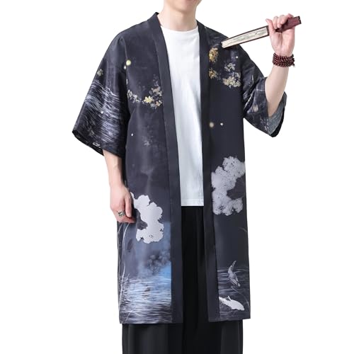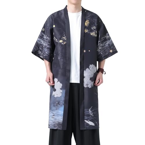 HOT ! PRIJOUHE Men's Kimono Robe Lightweight Japanese Bathrobe Open Front Casual Long Cardigan Yukata Jacket