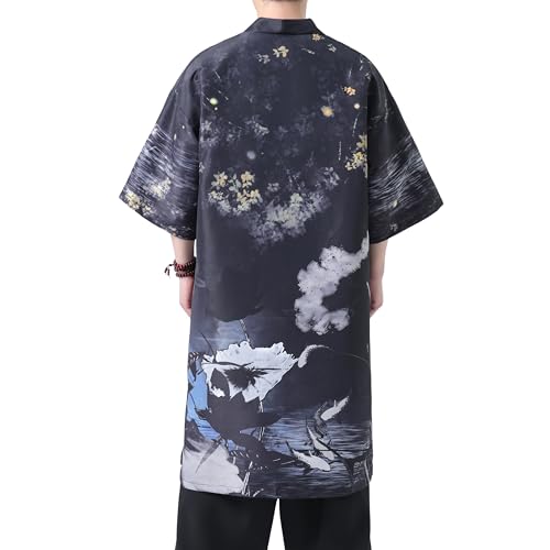 PRIJOUHE Men's Kimono Robe Lightweight Japanese Bathrobe Open Front Casual Long Cardigan Yukata Jacket 4