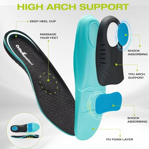 • PLANTAR FASCIITIS RELIEVING INSOLES: Focusing on arch support, plantar fasciitis, flat foot,and other foot diseases. Orthopedic insoles evenly distribute foot pressure, improve posture, scientifically balance foot structure, correct abnormal walking patterns, and effectively alleviate heel or metatarsal pain caused by plantar fasciitis