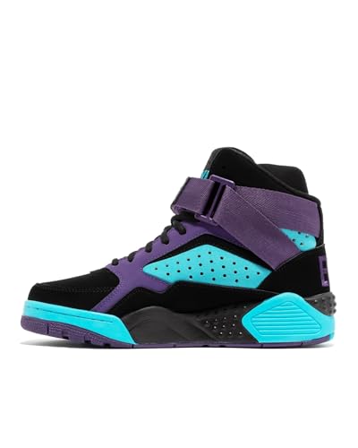 • Originally worn by Patrick during the 1993 Regular Season and Playoffs, the FOCUS is back. At the time of production, this was the most advanced EWING model that had ever been produced and Patrick had one of the best seasons of his career wearing this shoe. Featuring an ankle cross strap system with neoprene upper inserts and a lightweight textured EVA midsole for cushioning. This Charlotte inspired colorway features a premium Black nubuck upper with Purple and Teal accents. Available in Mens Si