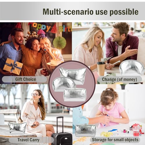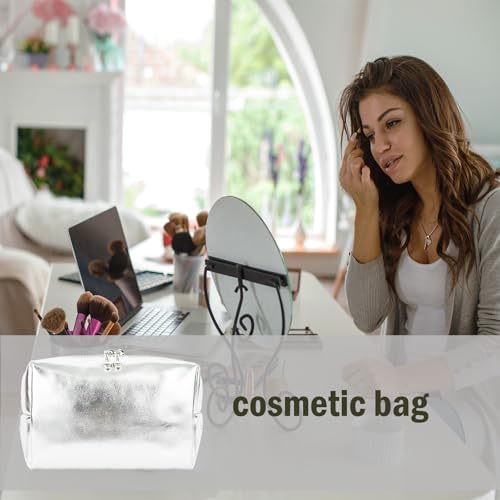 3pcs Make up Bag Set Travel Makeup Bags for Women Leather Cosmetic Bag Toiletry Organizer Bag Personalized Makeup Pouch Skincare Bag Silver 7