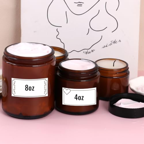 8 oz Amber Round Glass Jars, Pack of 2 with Black Lids, Cosmetics Containers for Face Cream Lotion, Powder, Candle, Spice, Body Butter 4