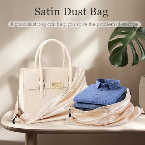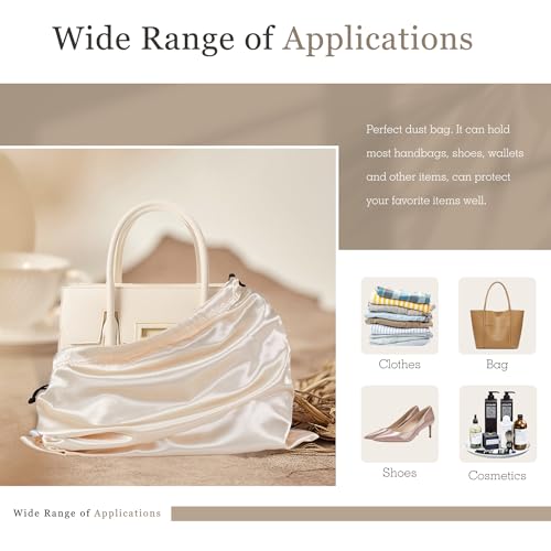 • EASY CARE: The Satin Dust Bag is practical and able to store a wide variety of items, such as large handbags, large purses, backpacks, sports bags, shoes, boots, clothing, cosmetics and more. The fabric is easy to maintain and clean, don't worry about dirty dust bags, just throw them in the washing machine on a gentle cycle with cold water to reduce shrinkage, and air dry as soon as possible after washing.