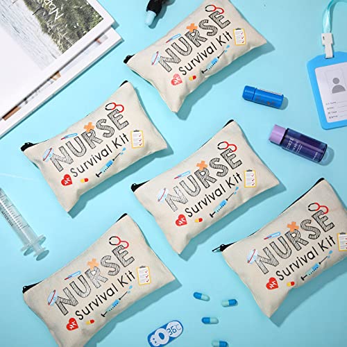 Kajaia 30 Pieces Nurse Makeup Bags Nurse Survival Kit Bag Nurse Gift for Women, Nurse Practitioner, Nursing Student, Nurses Week Gifts Funny Travel Cosmetic Bag Mini Multi Purpose Toiletry Bag(Beige) 1