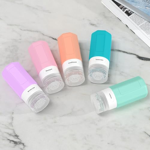 2 oz Travel Bottles, Small Size Containers, TSA Approved Silicone Travel Toiletries Bottles, Shampoo and Conditioner Kit for Women (Cream) 5