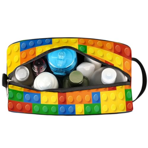 HOT ! Colorful Building Blocks Travel Toiletry Bag for Kids, Waterproof Hanging Wash Bag Dopp Kit for Boys Shaving Bag for Toiletries Accessories